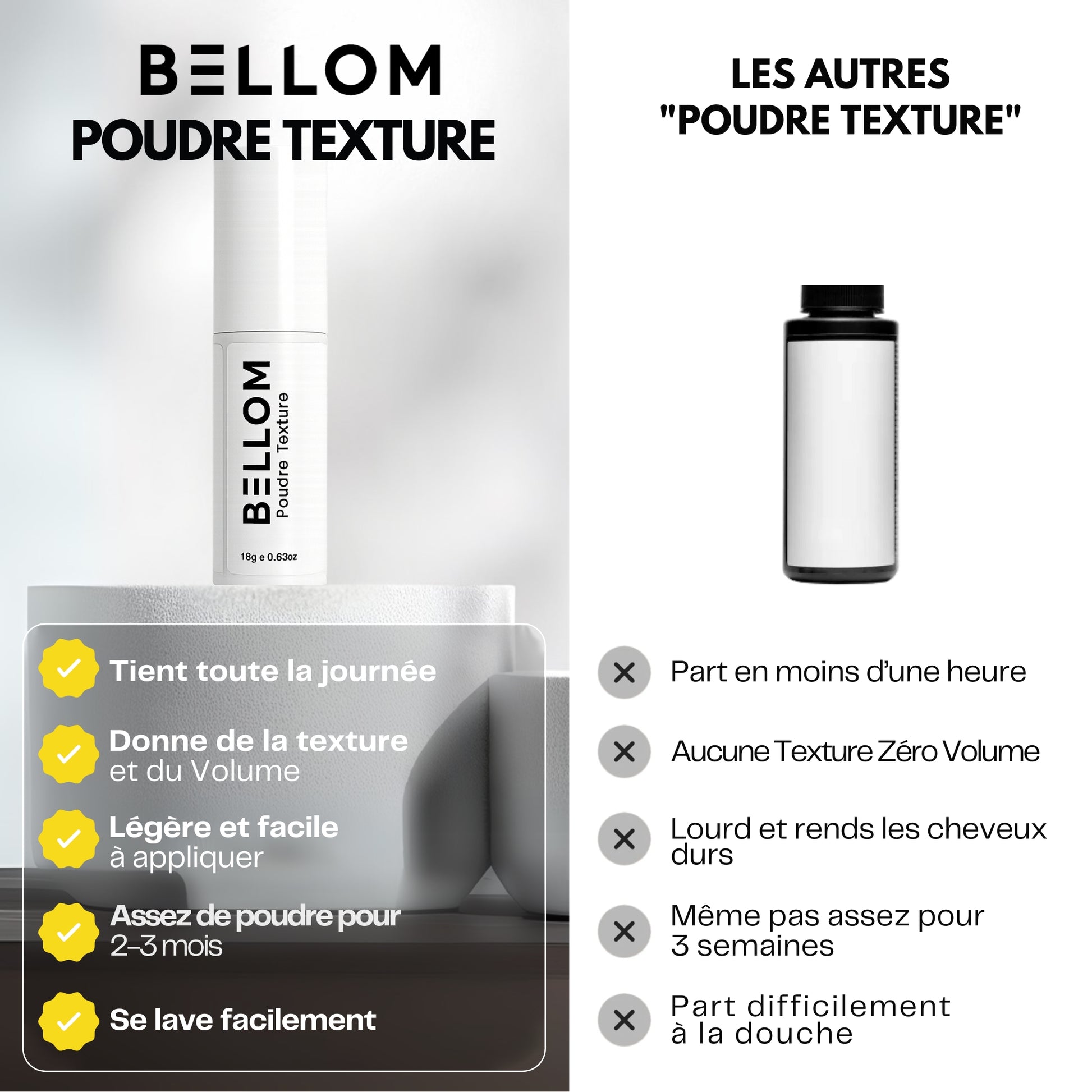 La poudre texture donne du volume en 3 sprays, elle est simple a appliquer, n'assèche pas les cheveux et ne laisse aucun résidus.
